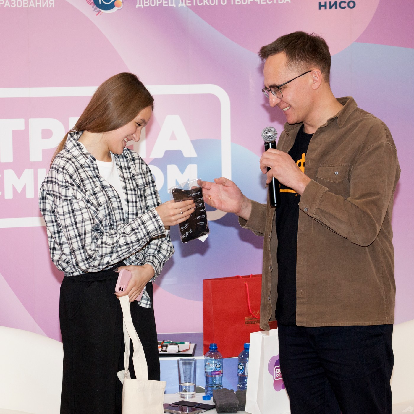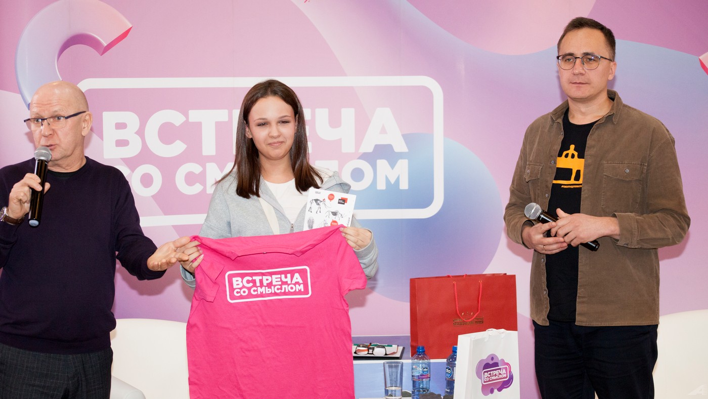 В завершение встречи школьники приняли участие в розыгрыше специальных призов проекта «Встреча со смыслом». Авторам самых интересных вопросов Антон Витальевич вручил памятные сувениры.
