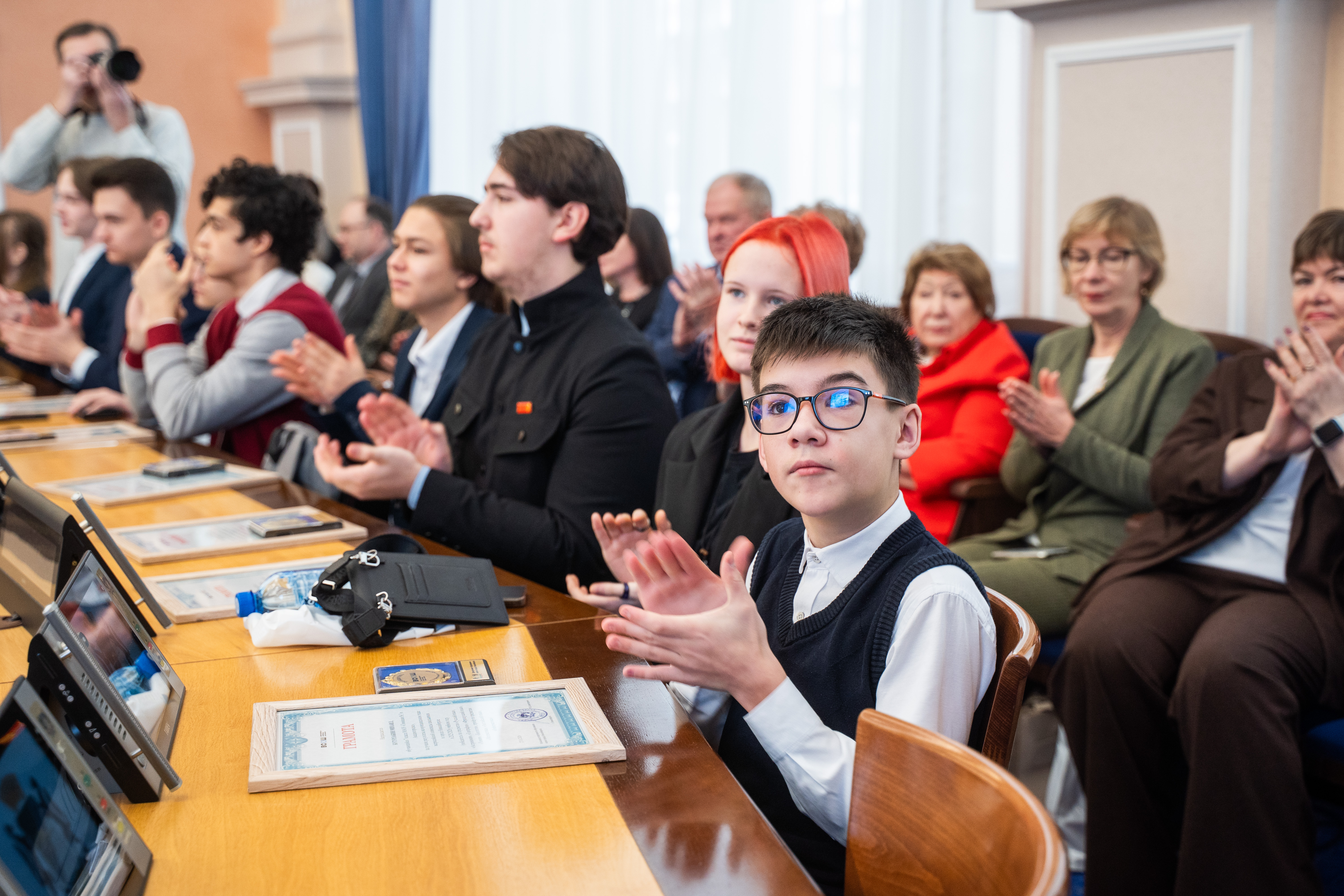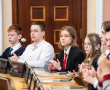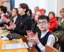 От имени всех победителей и призеров олимпиады к участникам мероприятия обратились ученик 7 класса Гимназии № 3 в Академгородке Бутурлакин Михаил (победитель МЭ ВсОШ по 3 предметам и призер по 3 предметам) и ученик 11 класса Второй гимназии Мастов Арсений (победитель МЭ ВсОШ по 3 предметам и призер по 1 предмету). Ребята отметили, что такие достижения не были бы возможны без поддержки педагогов и семьи. Они поблагодарили учителей – за помощь и родителей – за внимание и терпение. Новосибирским школьникам пожелали настойчиво добиваться поставленных целей.