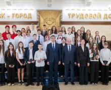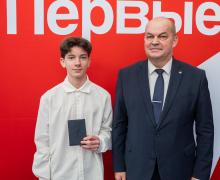 Юным новосибирцам вручили паспорта гражданина Российской Федерации заместитель мэра города Новосибирска Евгений Владимирович Попантонопуло и начальник департамента образования мэрии города Новосибирска Рамиль Миргазянович Ахметгареев.