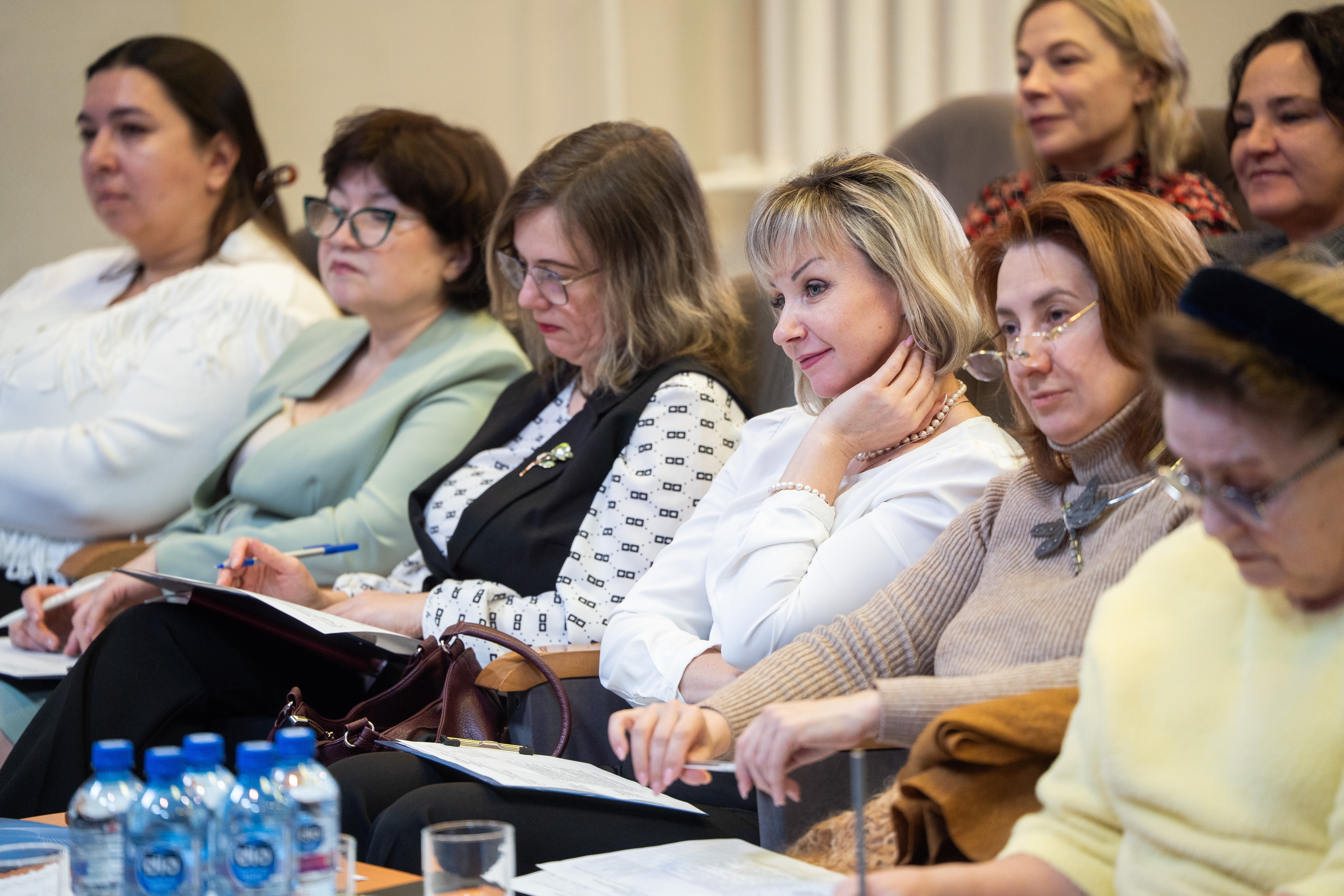 В задании «Брифинг» 10 участниц конкурса в формате короткой пресс-конференции продемонстрировали способности к конструктивному диалогу со всеми участниками образовательных отношений и представителями общественности по актуальным вопросам развития образования. Участницы обсудили вопросы в рамках Года дошкольного образования и Года единства народов России.
