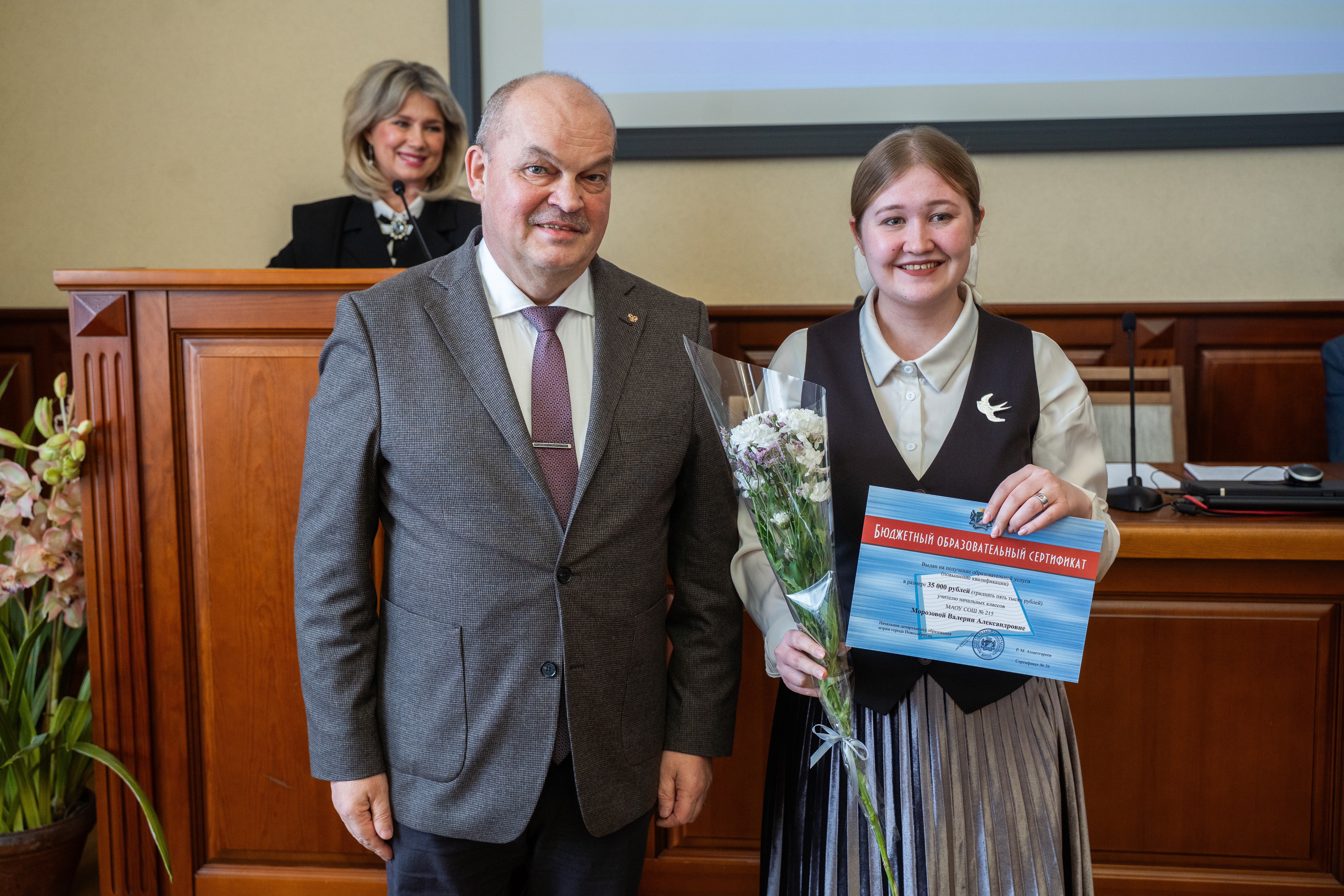 «Городской конкурс образовательных сертификатов уже 17 лет помогает учителям и директорам школ развиваться профессионально. За это время победителями конкурса стали 565 человек – они прошли обучение в самых лучших учебных центрах нашей страны. Обмен опытом, инновационные методики и новые подходы всегда положительно сказываются на муниципальной системе образования. Благодарю всех участников конкурса за активность и преданность профессии», – отметил заместитель мэра Новосибирска Валерий Александрович Шварцкопп.